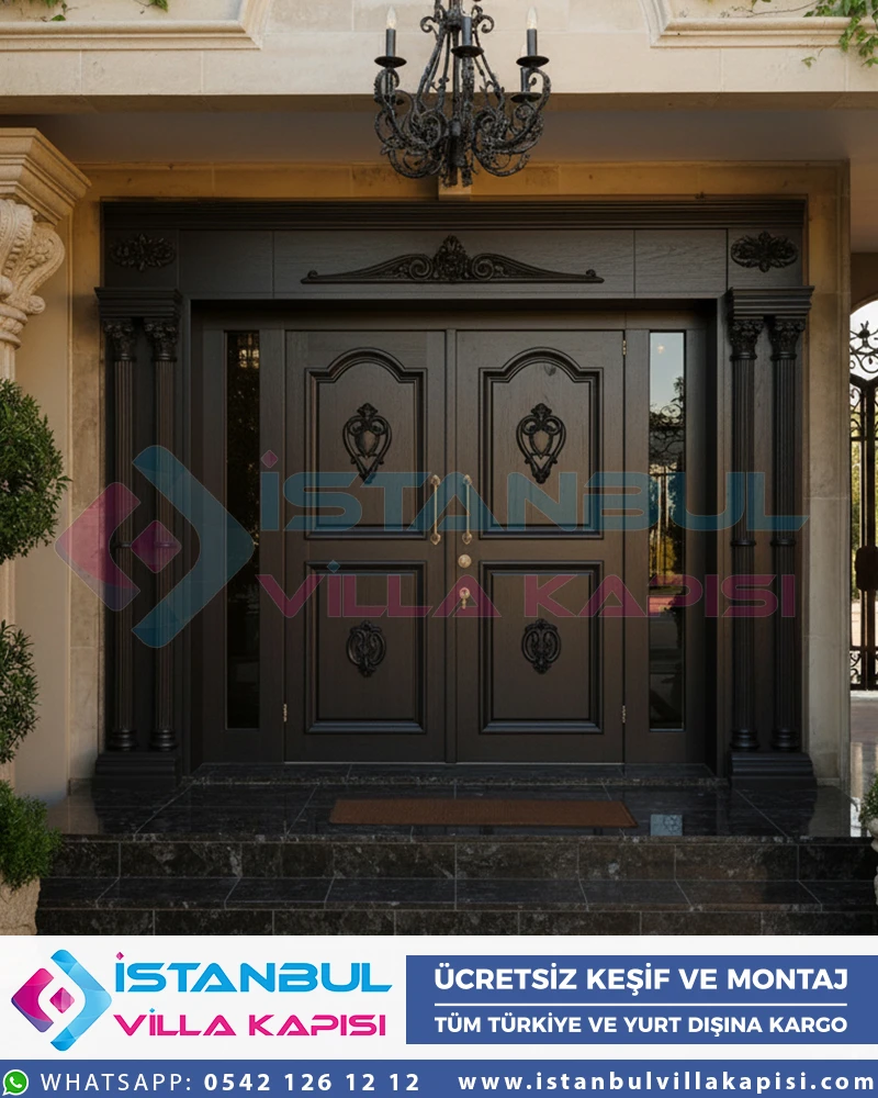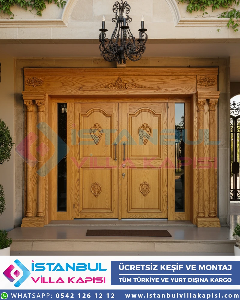 Klasik villa kapıları, gösterişli detayları ve el işçiliği ile dikkat çeken modellerdir. Ahşap kaplama çelik kapılar, özellikle iroki gibi dayanıklı ahşaplar ile birleştiğinde, hem güvenlik hem de estetik açısından mükemmel bir seçenek sunar. Oymalı desenler, sütun detayları ve altın varaklı aksesuarlarla bu kapılar, klasik mimariyi tamamlayan önemli unsurlardır.